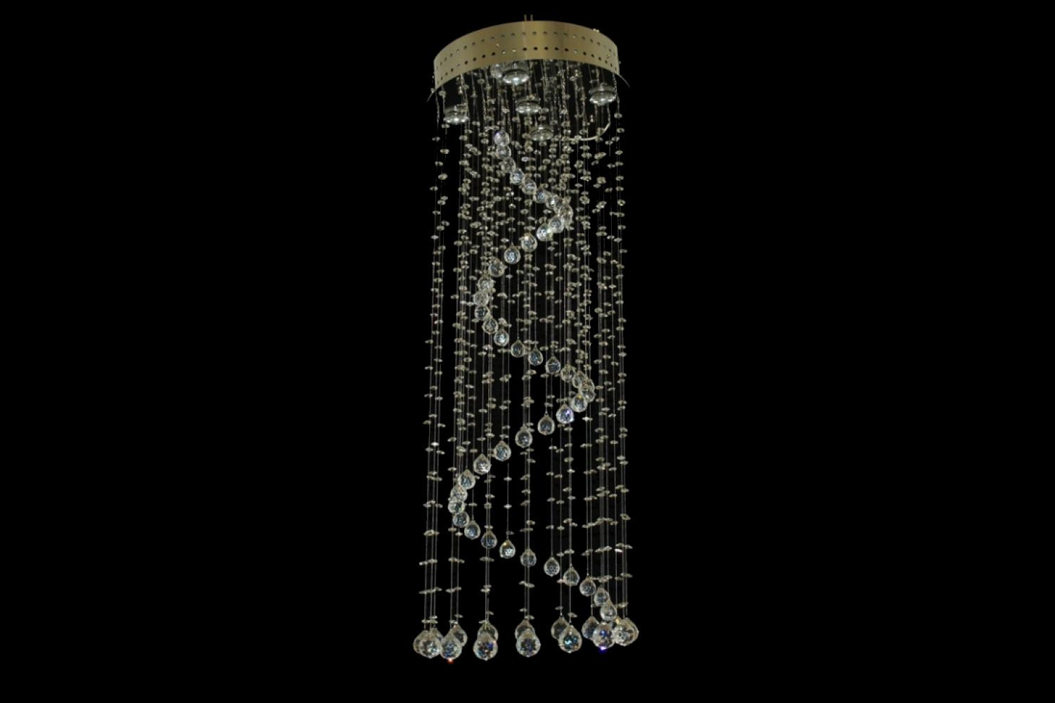 Der Durchmesser des Kronleuchters ist 60 cm, die Höhe ist 210 cm, das Gewicht beträgt ca. 25 kg, der Kronleuchter benötigt 9 Leuchtmittel (G9 LED).
