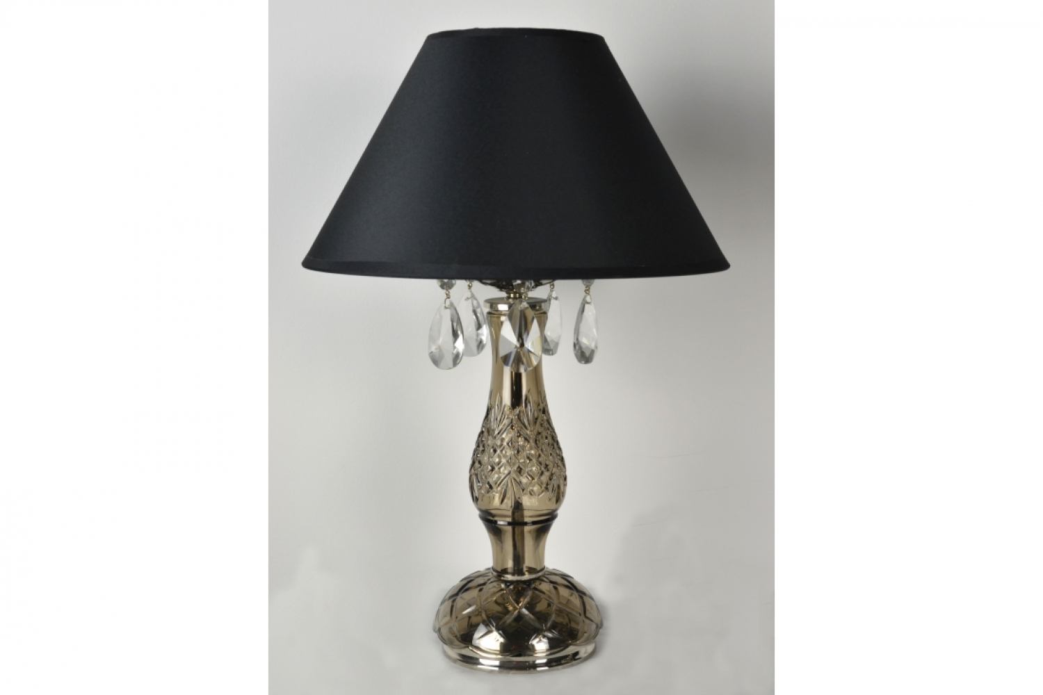 Die elegante Tischlampe bestehen aus hochwertigem Böhmischen Kristallglas. Der Behang ist reichlich und von hochwertiger Güte mit einem hohen Bleigehalt. Silberfarbige Metallteile sind mit einer Schutzschicht versehen.