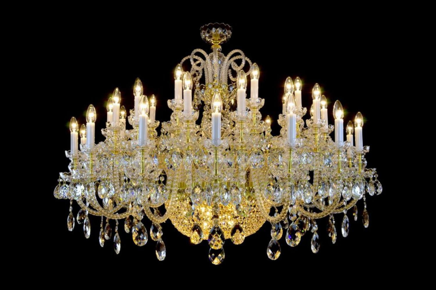 Crystal chandelier Reign 49, Lead crystal 24% PbO, the chandelier is made 100% by hand by a renowned Bohemian chandelier manufacturer.