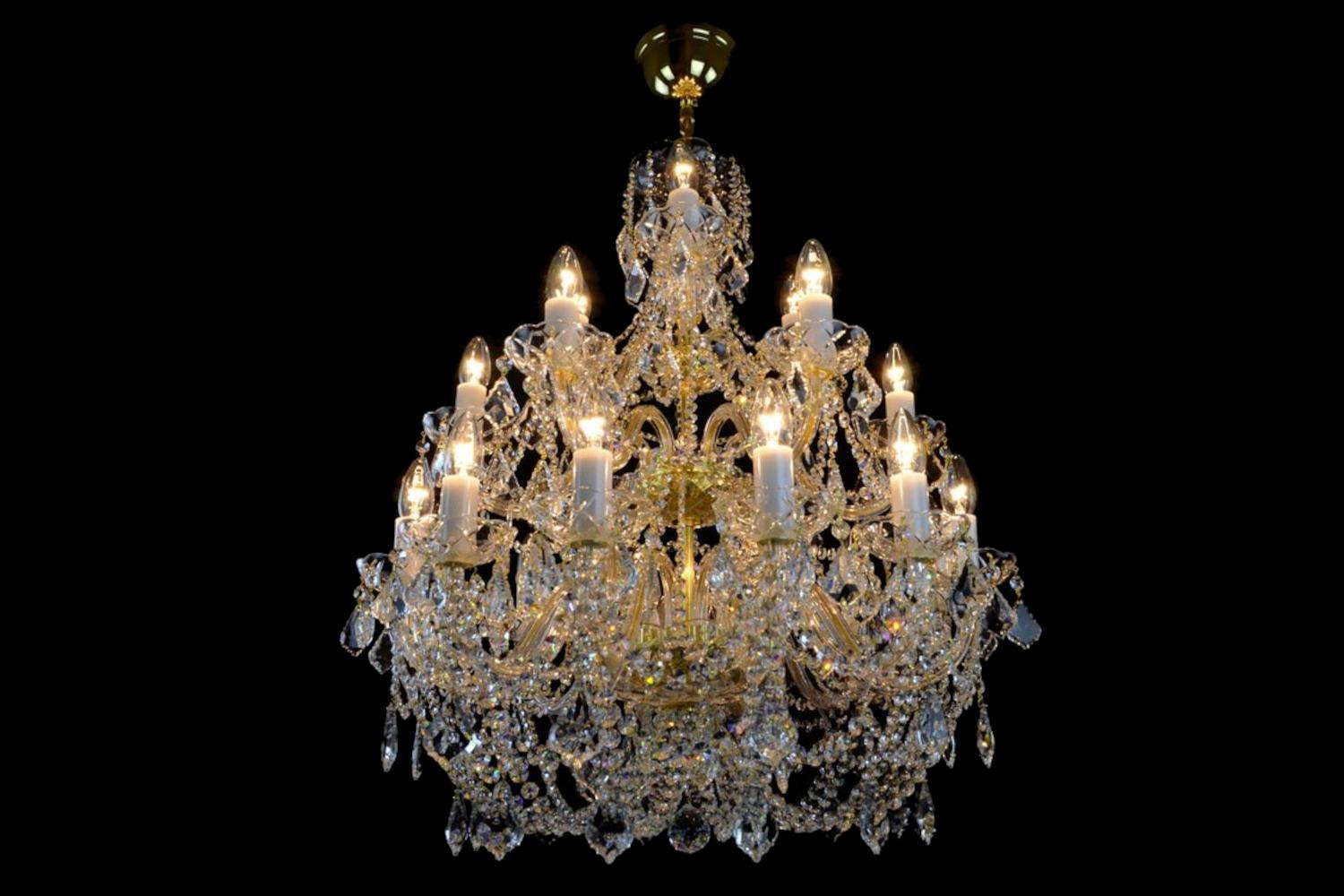 Crystal chandelier Ricamente Decorado 21, Lead crystal 24% PbO, the chandelier is made 100% by hand by a renowned Bohemian chandelier manufacturer.