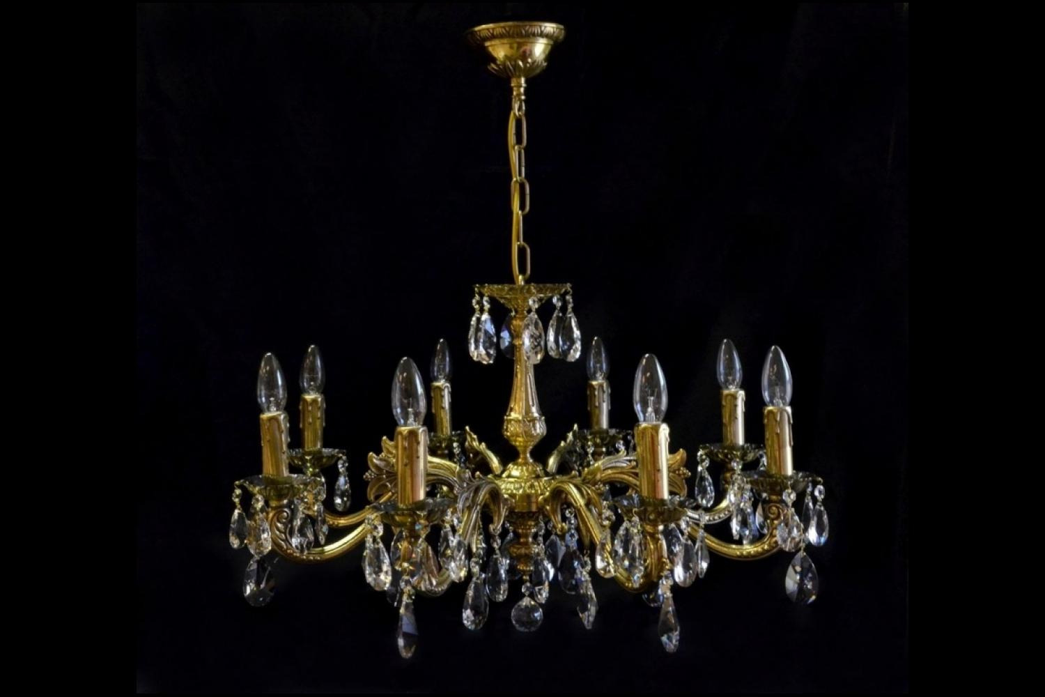The chandelier is made of cast parts and the finest crystal with a high lead content. This impressive chandelier is suitable for both classic and modern interiors. The polished brass is coated with a protective layer.