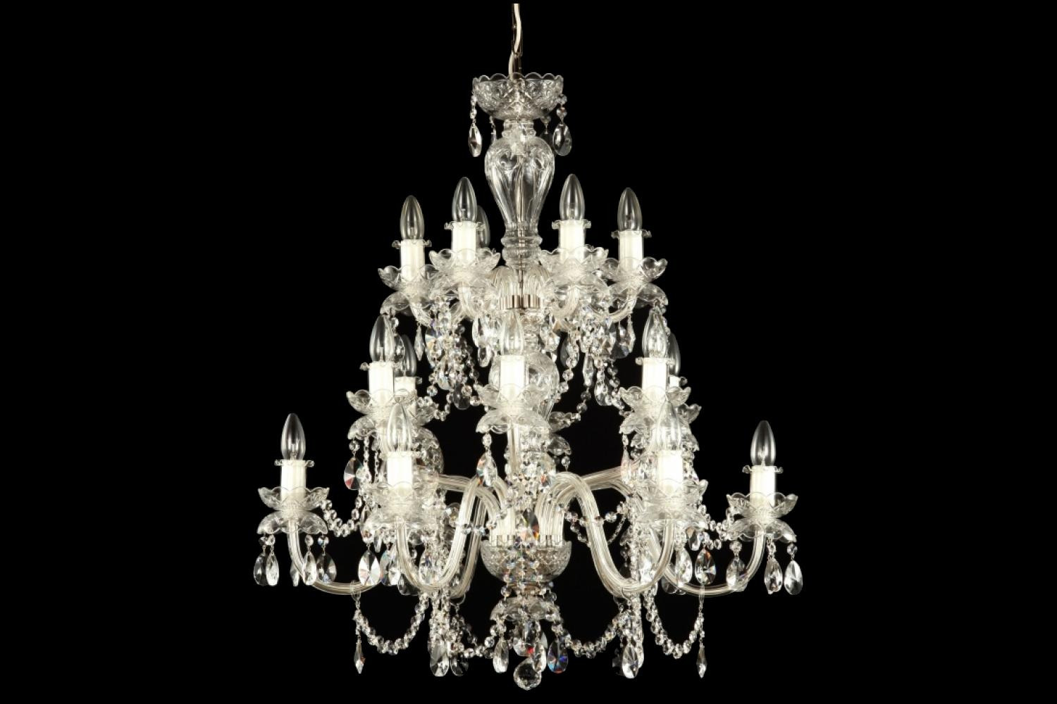 Crystal chandelier De Luxe 18, lead crystal 24% PbO, the chandelier is made 100% by hand by a renowned Bohemian chandelier manufacturer.