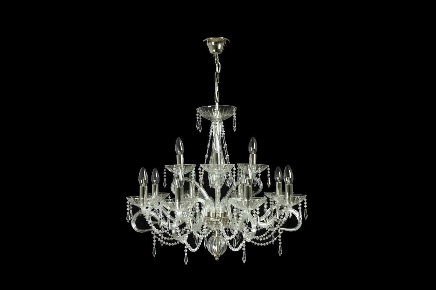 Crystal chandelier Pianissimo 12, lead crystal 24% PbO, the chandelier is made 100% by hand by a renowned Bohemian chandelier manufacturer.