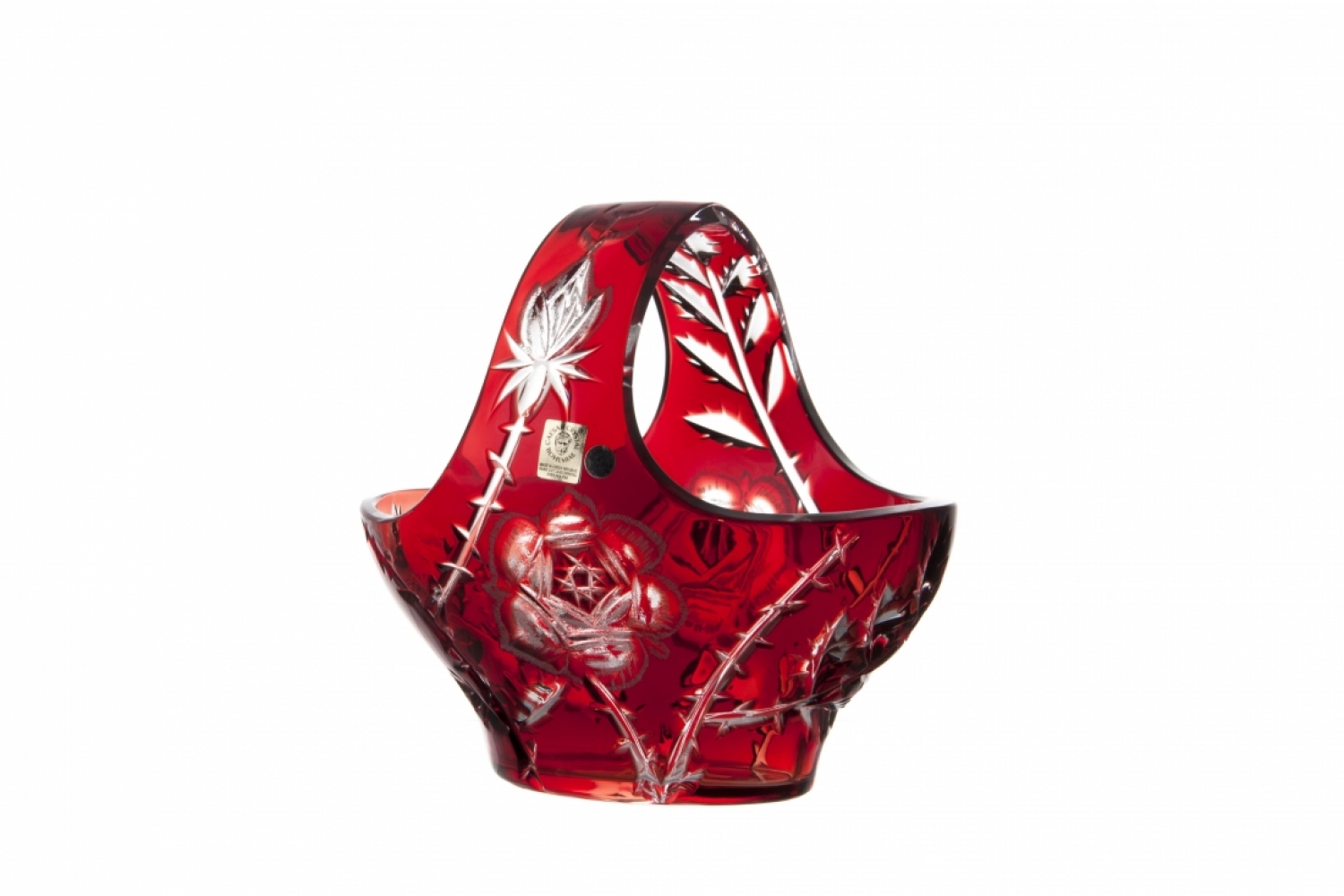 Rose basket, lead crystal 24% PbO, manufactured using the overlay technique. The cased crystal basket is 100% handmade by the renowned Bohemian lead crystal manufacturer CAESAR CRYSTAL BOHEMIAE.
