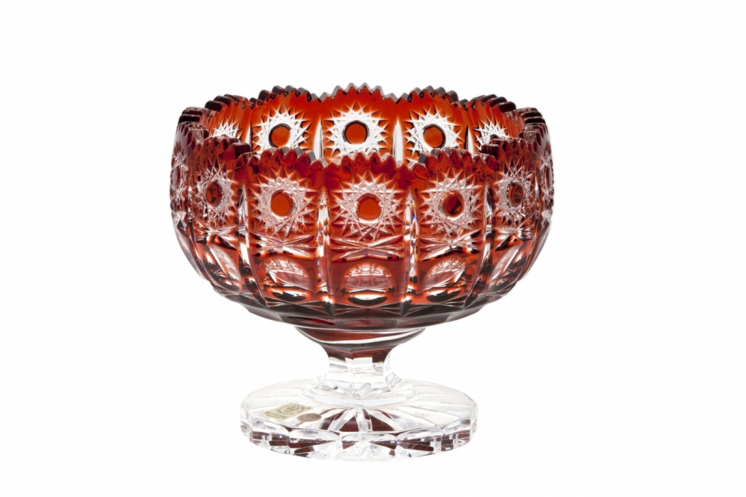 Compote Petra, lead crystal 24% PbO, manufactured using the overlay technique. The compote is made 100% by hand by the renowned Bohemian lead crystal manufacturer CAESAR CRYSTAL BOHEMIAE. Various colours, sizes and shapes are available.