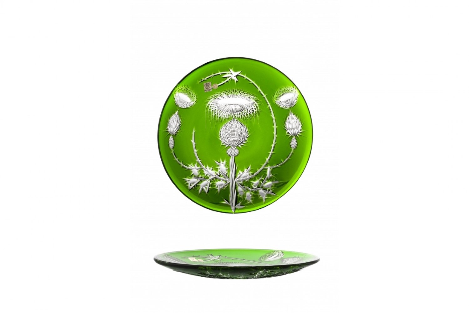 Plate Thistle, lead crystal 24% PbO, manufactured using the overlay technique. The plate is made 100% by hand by the renowned Bohemian lead crystal manufacturer CAESAR CRYSTAL BOHEMIAE.