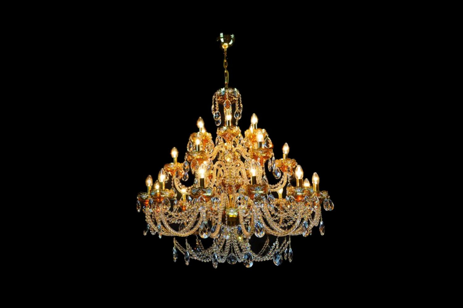 Lustre en cristal Rosso 24, Cristal de plomb 24% PbO, le lustre est fabriqué à 100% à la main par une célèbre manufacture de lustres de Bohème.