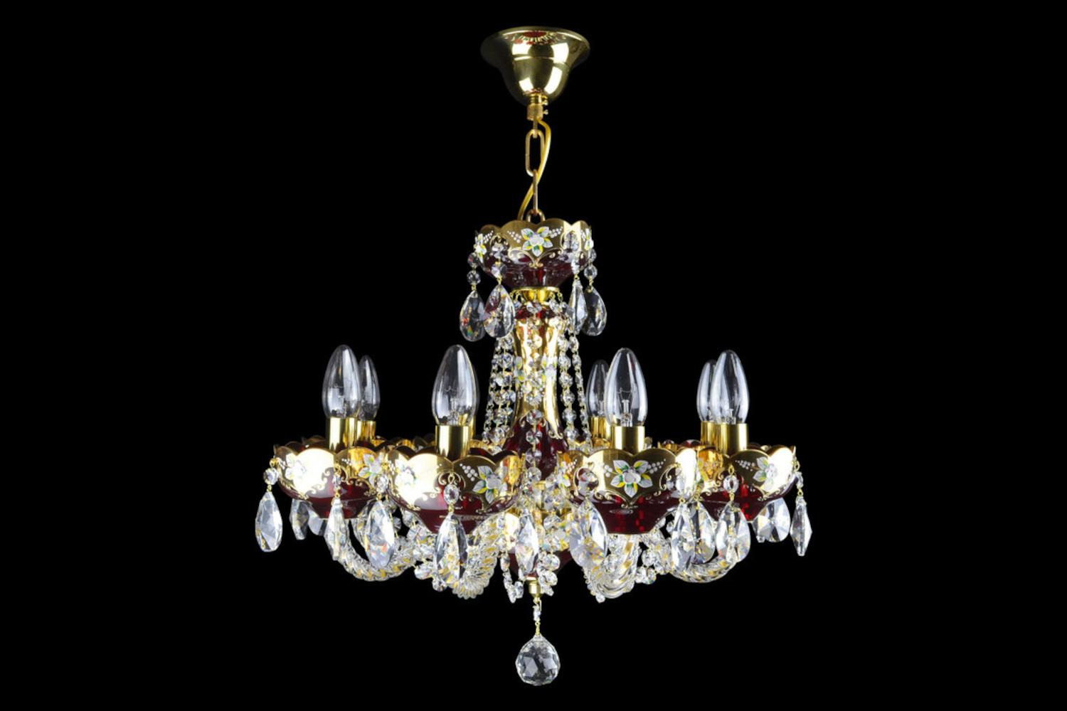 Lustre en cristalRosso 8, Cristal de plomb 24% PbO, le lustre est fabriqué à 100% à la main par une célèbre manufacture de lustres de Bohème.