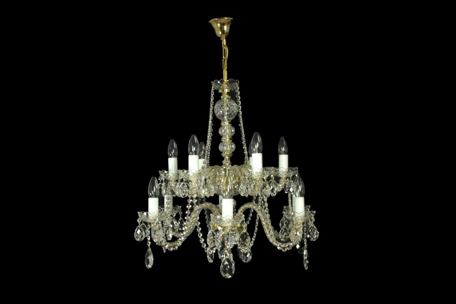Lustre en cristal Superbe 12, cristal de plomb 24% PbO, le lustre est fabriqué à 100% à la main par une célèbre manufacture de lustres de Bohème.